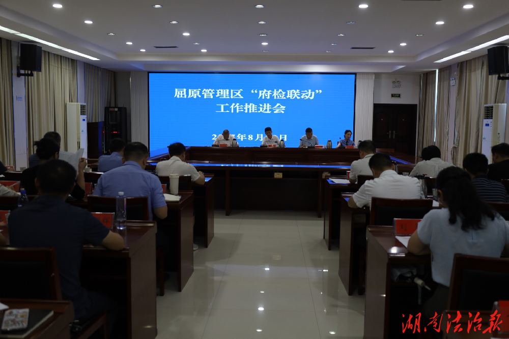湖南法治报讯(通讯员 钟磊)为增强法治政府建设与检察监督良性互动,促进全区依法行政,8月18日,岳阳市屈原管理区管理委员会召开“府检联动”工作推进会。会议由区党委委员、政法委书记徐胜主持,区党委副书记、管委会主任沈小星出席会议并讲话。区人民检察院党组书记、检察长吴俊霖以及司法局、交通局等20余家行政执法单位相关负责人参加会议。