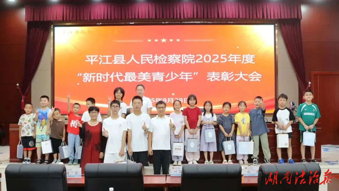 湖南法治报讯(通讯员 魏语蝶)为鼓励检察人员子弟勤学奋进,传承优良家风,2025年秋季开学之际,平江县人民检察院举行了一场特殊的“新时代最美青少年”表彰大会。院关工委代表、全体检察人员及其子弟共同见证了这份独特的“开学礼”。