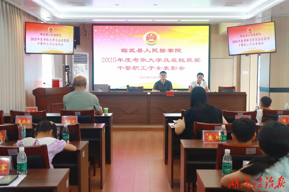 为加强对干警职工子女的教育鼓励,进一步营造重视教育、崇尚学习的成长环境,8月20日,临武县人民检察院组织召开2025年度考取大学及在校获奖干警职工子女表彰会。院党组书记、检察长曾野出席会议并讲话,优秀学子代表及家长30余人参加会议。
