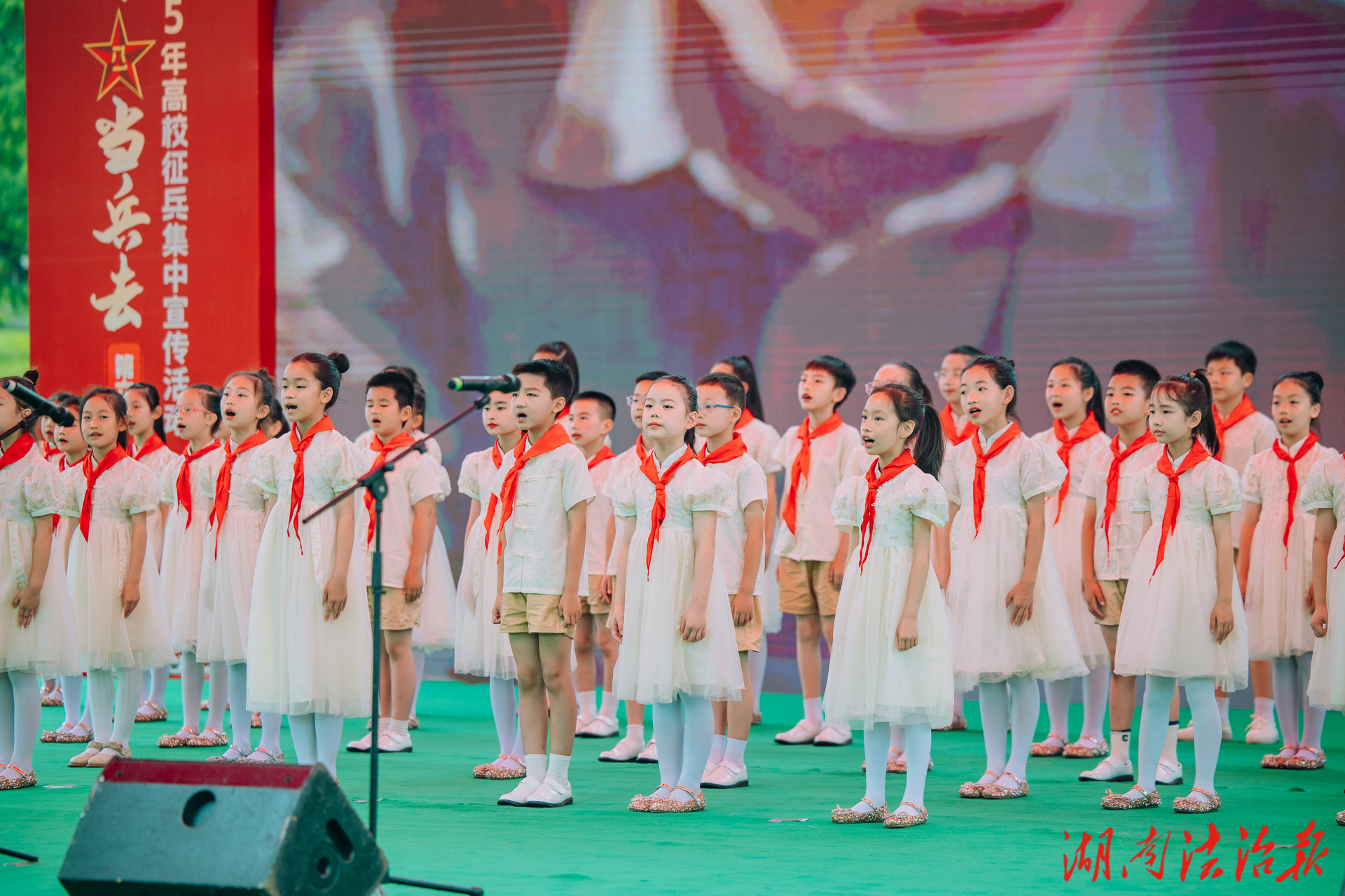 现场以沙画拉开序幕,栩栩如生、层层递进,勾勒出青年从田间走向战场的蜕变轨迹。芙蓉区育英第三小学的孩子们合唱《我有一个梦》,用歌声致敬梦想。湖南农业大学应征入伍报名大学毕业生代表们以诗朗诵《军营,我选择了你》道出抉择心声。湖南农业大学学子的舞龙与无人机表演,带给观众一场传统与现代碰撞的视觉盛宴。湖南司法警官职业学院学生干净利落、整齐划一的枪操表演展示了军事兴趣类社团的丰硕成果。《我在军营等你》视频的播放,镜头中闪现出从长沙这片热土出发、投身军营的青年们的身影,铿锵誓言深深叩入每位现场观众心扉。长沙籍现役战士马成朗讲述从英雄的长沙城到英雄的长沙舰的故事令人备受鼓舞......台下人头攒动,掌声不断,广大青年学子强军报国的激情梦想被触动点燃。