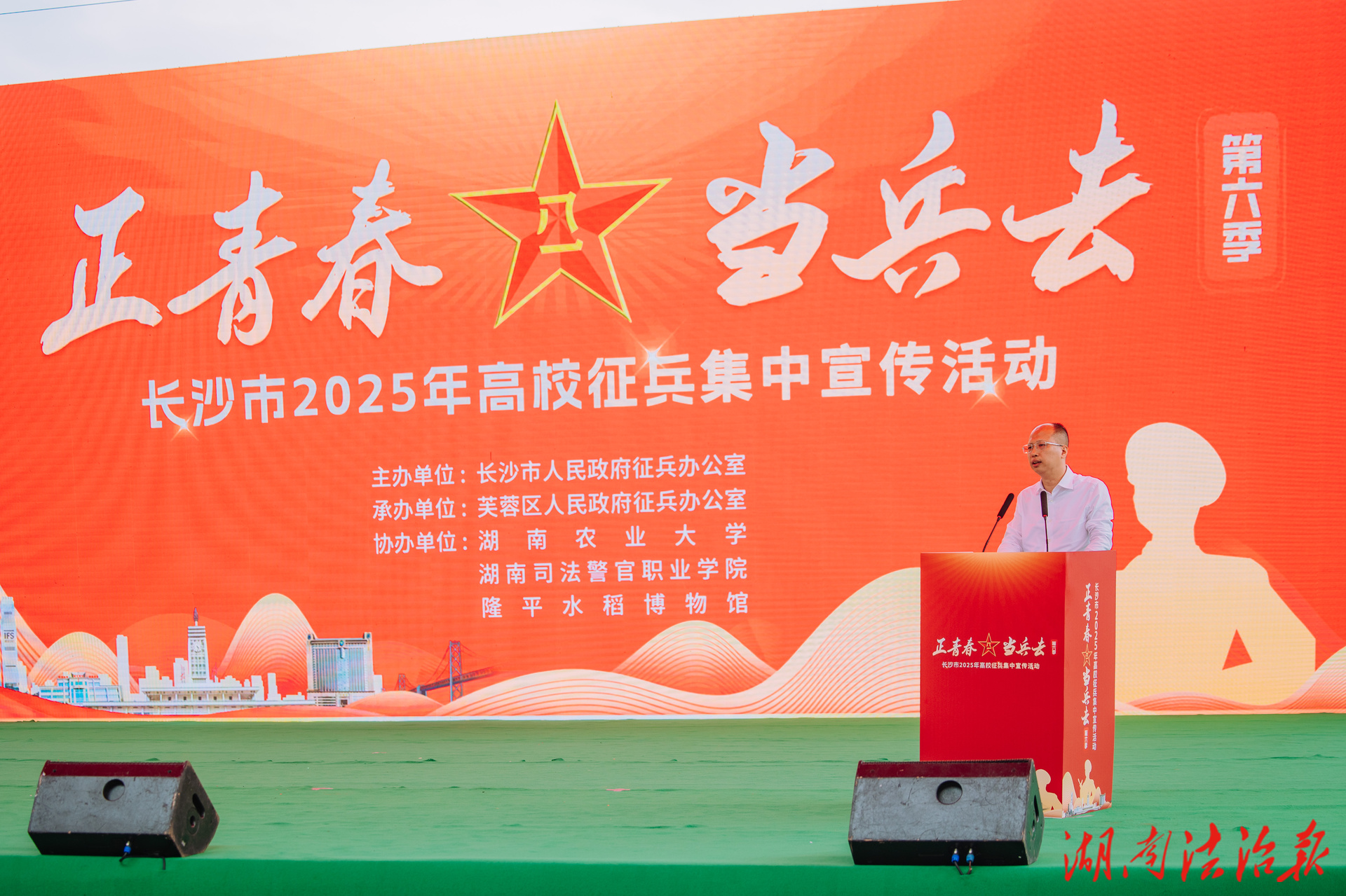 湖南法治报讯(通讯员 陈诺 曾颖)5月22日上午,长沙市芙蓉区隆平水稻博物馆内稻香氤氲、军歌嘹亮,“正青春•当兵去(第六季)”——长沙市2025年高校征兵集中宣传活动在此展开。活动通过“种子·梦想萌生”“嫩芽·磨砺培育”“成穗·风雨结果”三大篇章,串联起从军旅梦想到使命践行的成长脉络。
