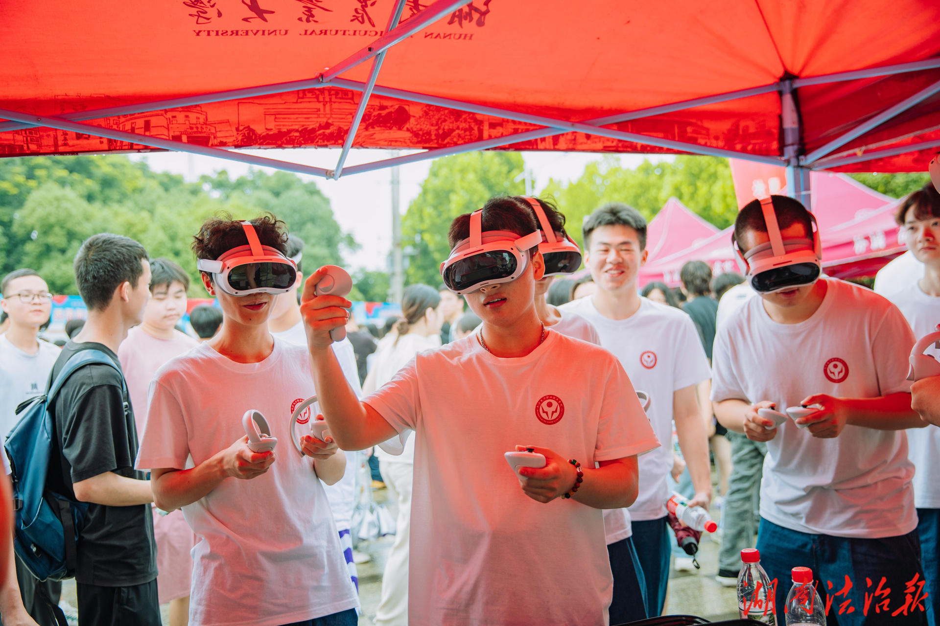 科技赋能征兵路,沉浸式播种迷彩梦。此次活动通过科技赋能、文化浸润与沉浸式体验,将国防教育、强军使命与雷锋精神深度融合。在外场设置有装备展示区、政策宣传区、人机互动区等,供参会人员沉浸式体验。模拟射击、MR等各类体验项目排起长队,让学生在科技交互中感受军事魅力,湖南农业大学学生戴上MR设备后感叹:“虚拟战场上的硝烟,让我真切感受到军人的使命重量!”一旁的装备展示区,侦查无人机、航母模型等装备也吸引了众多青年学子驻足观摩,讲解员结合南海维权、国际维和等案例,生动诠释“科技强军”内涵。征兵宣传区的征兵办工作人员通过“一站式”答疑解惑,和现场的政策咨询机器人共同为学子解读政策亮点。湖南司法警官职业技术学院意向入伍学生坦言:“政策支持让我们既能圆梦军营,又无后顾之忧。我们青年应以热血守护山河,把青春压进枪膛,让热血融入战旗!”
