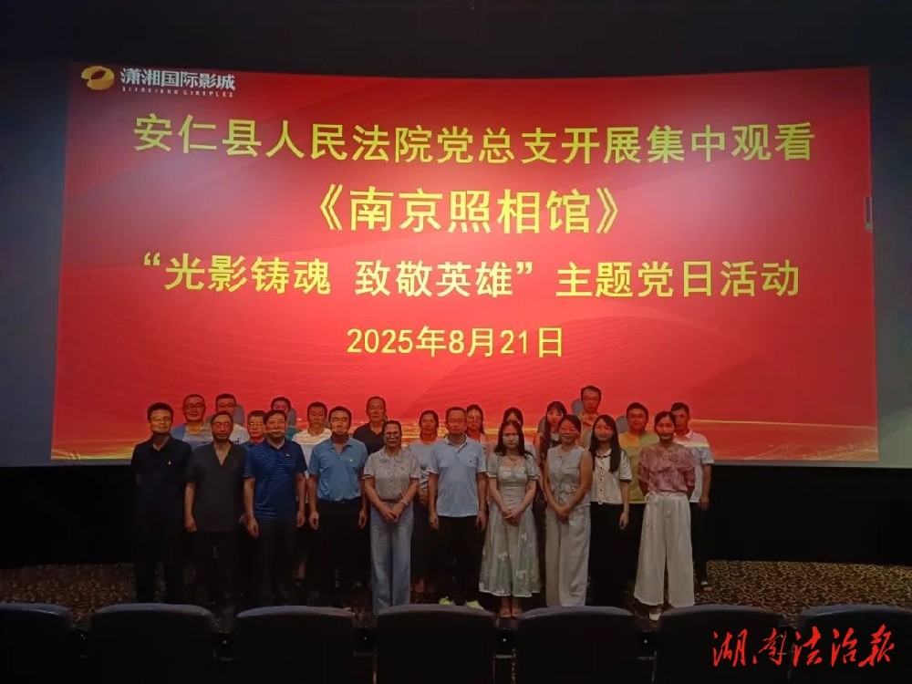 为纪念中国人民抗日战争暨世界反法西斯战争胜利 80 周年,大力弘扬爱国主义精神,缅怀革命先烈、传承英雄精神,凝聚新时代爱国奋进力量,近日,安仁法院组织开展 “光影铸魂 致敬英雄”——《南京照相馆》红色观影主题党日活动,全体干警共同在光影中回望历史、汲取精神力量。