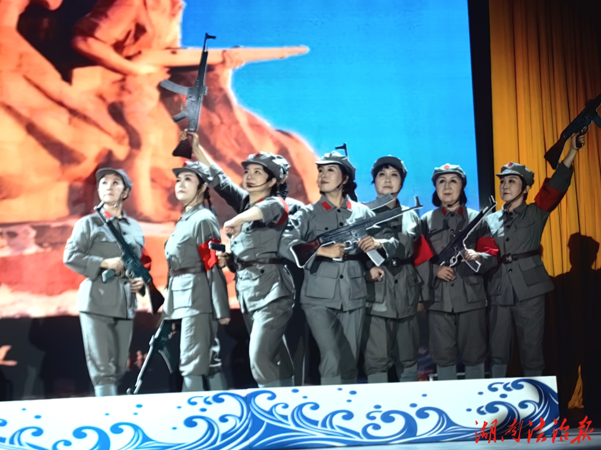开幕式上,金秋艺术院有关社团、省老干部大学有关分校、大同小学等,联袂献上精彩演出。文艺汇演以金秋交响乐团演奏的《热巴舞曲》开场,气势磅礴的旋律,瞬间点燃现场气氛;金秋舞蹈团则以《再唱山歌给党听》的优美舞姿,深情演绎红色经典。朗诵节目《穿越时空的对话》通过声情并茂的表演,将抗战历史与当代使命紧密串联。随后的节目亦异彩纷呈:陶笛六重奏《游击队之歌》再现峥嵘岁月,花鼓戏《骄杨之恋》《卜算子·咏梅》展现传统戏曲魅力,广场舞《一起向未来》传递时代活力,非洲鼓《丽江三部曲》带来异域风情;配乐诗朗诵《屏岳千秋独似飞》《校园文化展示秀》,合唱《游子情思》及混声合唱《金色的秋天》《如愿》等节目或激昂澎湃,或宛转悠扬。大同小学学生表演的校园集体舞《少年有志》,孩子们活力四射的舞步与老年学员的沉稳风范相映成趣,生动诠释了代际文化交融的独特魅力。
