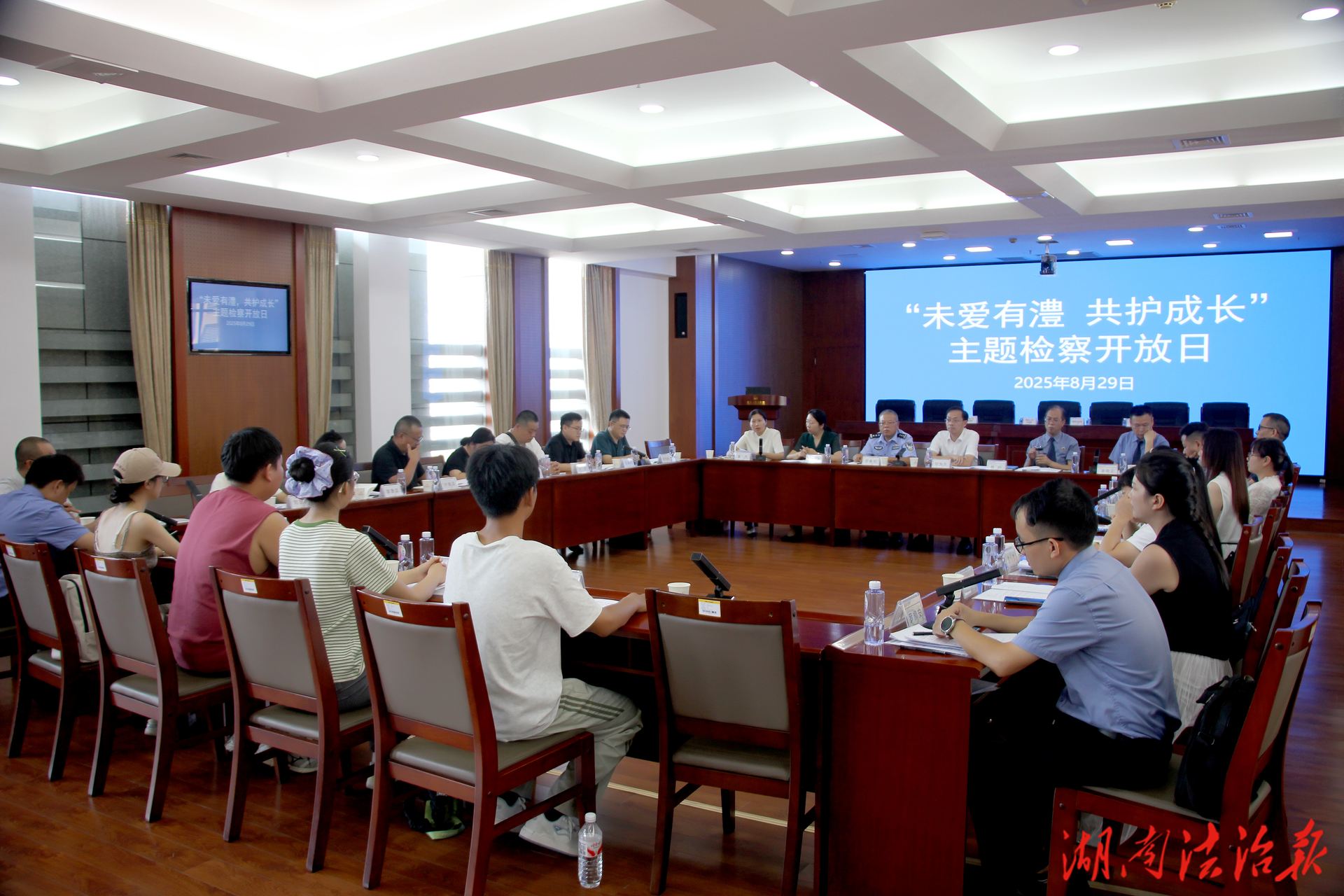 为凝聚社会力量,共同守护未成年人成长,8月29日上午,澧县人民检察院举办“未爱有澧·共护成长”检察开放日活动。常德市人民检察院副检察长邓为方、第四检察部主任刘芸,澧县人民检察院检察长杨仲,澧县公安局政委舒春初,澧县妇联主席黄杰莅临活动。相关单位分管负责人、人大代表、政协委员、人民监督员、师生代表等三十余人参与活动,“零距离”感受和了解未成年人检察工作。