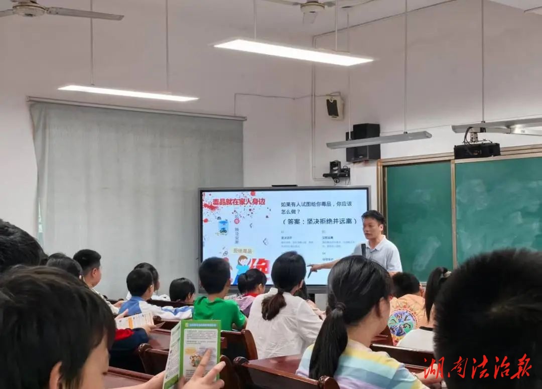 湖南法治报讯(通讯员 刘杰 )第38个“6·26”国际禁毒日即将到来之际,为进一步加强青少年毒品预防教育,提高学生识毒、防毒、拒毒意识,6月23日,韶山乡人民政府联合市禁毒办、韶山冲派出所、市禁毒协会在韶山乡城前学校开展“防范青少年药物滥用”禁毒宣传教育活动,通过知识讲座、模具观摩、互动抢答等形式,为同学们带来了一堂生动而深刻的禁毒教育课。