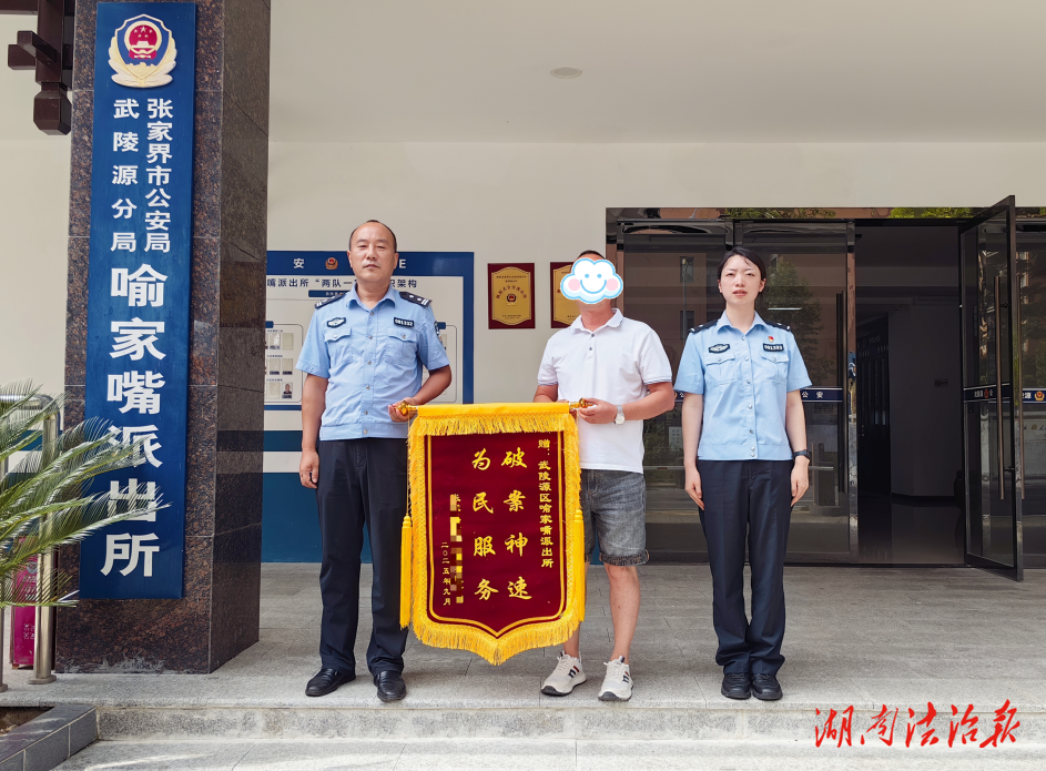 湖南法治报讯(通讯员 朱梦婧)一面印着“破案神速 为民服务”的锦旗,承载着群众的满满谢意与信赖,更彰显了武陵源公安分局的责任和担当。近日,张家界市公安局武陵源分局喻家嘴派出所因帮群众白先生高效找回遗失物品,收到了这份特殊的“肯定”。