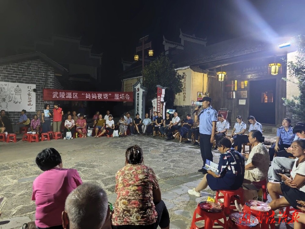 湖南法治报讯(通讯员 朱梦婧)为进一步筑牢反诈“防火墙”,守护好人民群众的“钱袋子”,9月16日晚,张家界市公安局武陵源分局联合区妇联等部门在协合乡李家岗村开展了一场别开生面的“反诈宣传屋场会”。民警与村民群众围坐一圈,以拉家常的方式,将反诈知识送到百姓身边。