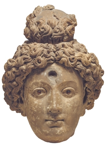 阿富汗哈达佛寺遗址出土泥塑菩萨头像。 |