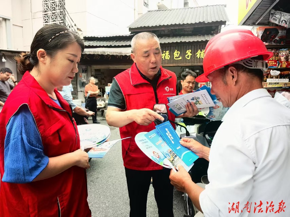 刘培友与社区工作人员一道宣传禁毒和反电诈(胡立强摄)