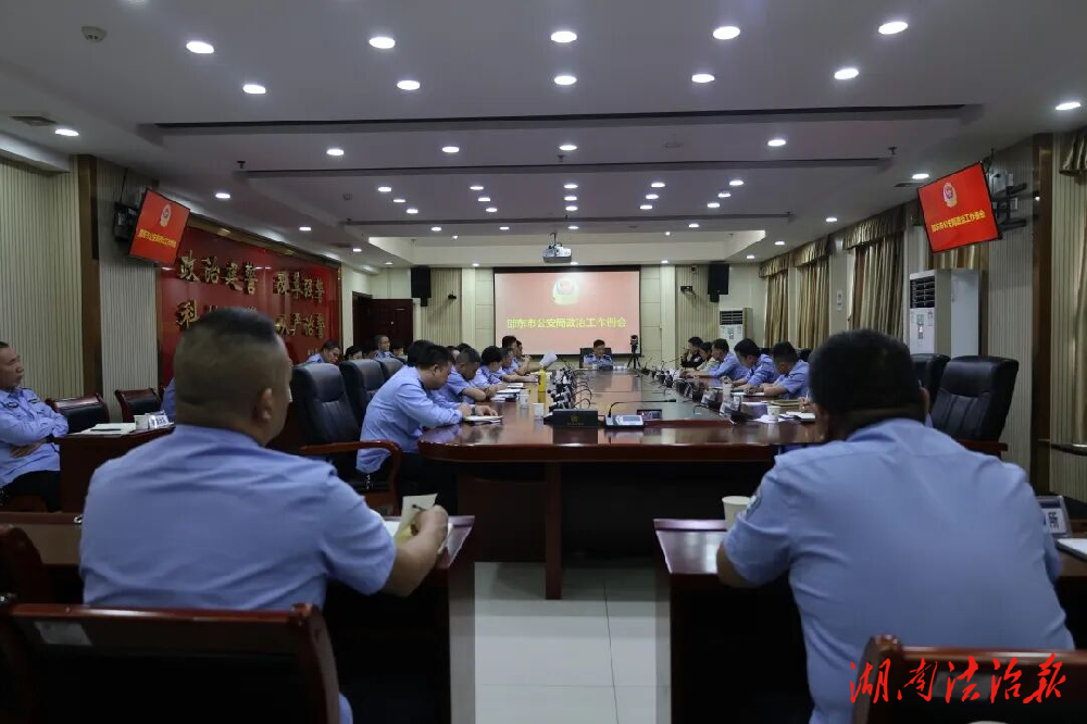 湖南法治报讯(通讯员 金彬 杨思怡 赵可欣)10月14日下午,邵东市公安局组织召开政治工作例会,局党委委员、政工室主任姜涛主持会议,市纪委监委驻市委政法委纪检监察组副组长王如珍,局属各单位教导员参加会议。