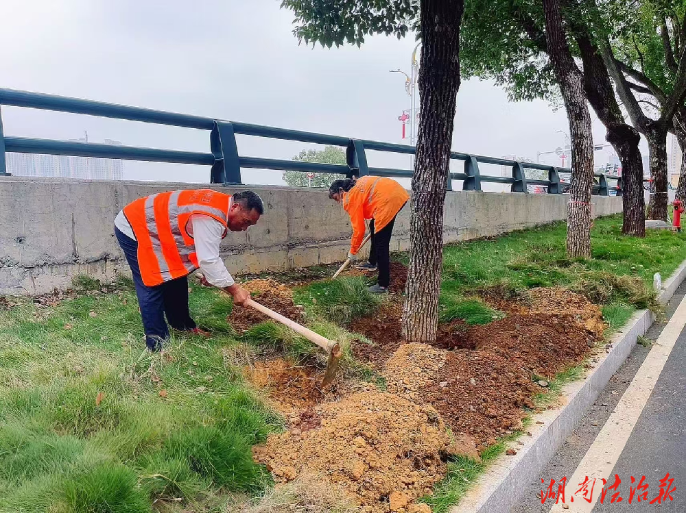 湖南法治报讯(通讯员 唐麒贸 邓珂芸)近日,冷水滩区湘江西路迎来了一场特殊的园林“手术”。区环卫和园林中心在凤凰园交警大队的安全保障下,对湘江西路与德源路交汇处的25株大樟树展开了一场全面的复壮救护与安全隐患整治行动。这不仅是简单的园林养护,更是冷水滩区在推进城市更新中,践行精细化管理、守护城市文脉、提升城市“首位度”的生动实践。