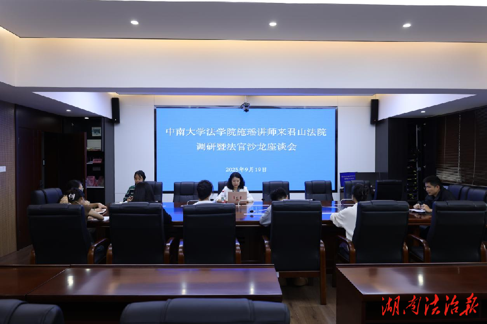 湖南法治报讯(通讯员 喻沛智)9月19日,中南大学法学院讲师、中南大学文化遗产研究院研究员施瑶来到君山区人民法院,围绕“湖南民营企业财产保全困境与出路研究”主题开展调研座谈。相关庭室负责人、青年干警代表参加座谈。