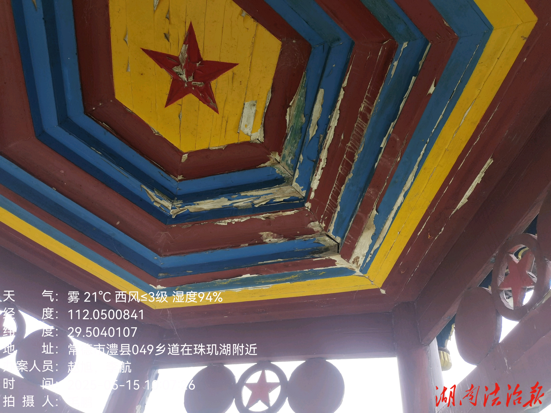 在履职过程中,办案人员对县域内多处文物保护单位实地勘查,发现位于官垸镇原珠玑湖村范围内的淞澧分流工程纪念塔(该纪念设施为纪念澧县民众参与堵口复堤、分流建闸工程而建),因长期受自然侵蚀影响,出现纪念塔底座破损,纪念亭瓦片缺失、油漆脱落,周围杂草丛生等问题,文物风貌受损严重。