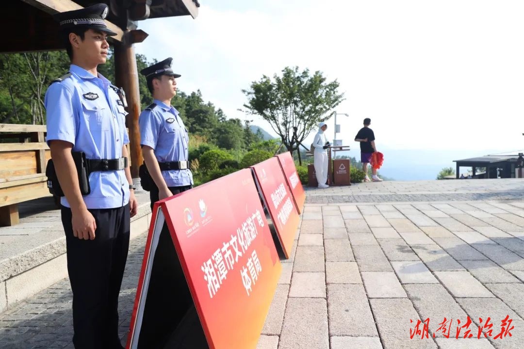 湖南法治报讯(通讯员 刘杰 曾小玲 曾诗阁)七月韶山,红旗漫卷,2025年湖南红色旅游文化节暨,湘潭市第四届旅游发展大会,在伟人故里盛大启幕。2025年7月10日上午,韶山公安全警动员,以“藏蓝身影”守护“红色热土”用汗水诠释平安担当,为八方宾朋绘就“景中有警、平安相随”的动人画卷。