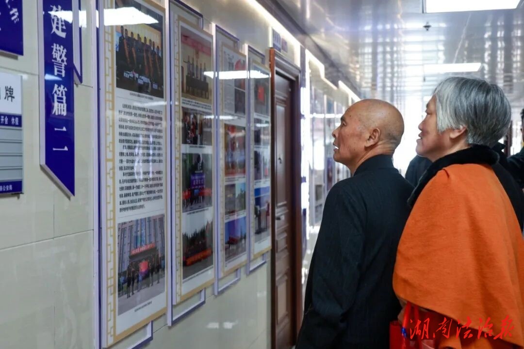 座谈会后,组织老干部参观“隆回公安警史文化长廊”,让老干部们沉浸式重温峥嵘岁月,深切感受隆回公安的发展变迁。黑白的老照片、身着旧式警服的身影、发黄的集体照、旧时的警务装备......瞬间勾起老干部们的回忆。当看到近年来公安信息化建设、智慧警务装备的展示板块时,老干部们频频点头,为如今隆回公安的发展速度与科技实力点赞。一路走、一路看,熟悉的场景与崭新的变化交织,老干部们不时互相交流,眼中满是欣慰与自豪。
