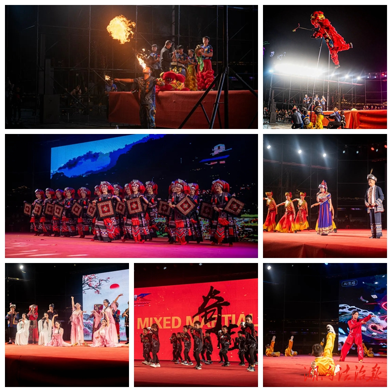 节目纷呈:民族文化闪耀光彩。在《狮舞盛世》的铿锵鼓点中,晚会拉开帷幕。歌舞《幸福新瑶家》《醉喜多》以翩跹舞姿,展现瑶家儿女的幸福生活;文化艺术团的乐器合奏《忆江南》,则用悠扬旋律勾勒出一幅诗画江南。跆拳道馆的演出与武术机构的《少年强则国强》刚柔并济,少年们以飒爽英姿和矫健身手,展现着中华儿女的昂扬精神。