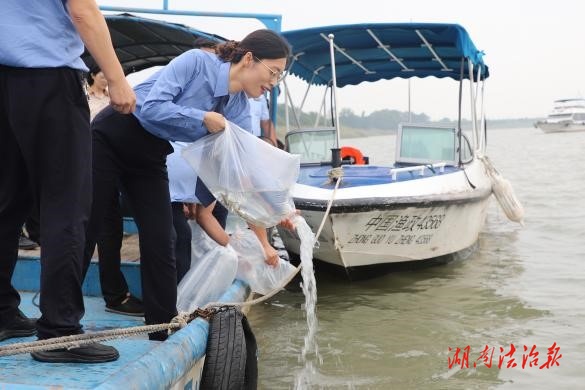鱼苗赴清波,司法润河湖——君山区检察院开展增殖放流活动
