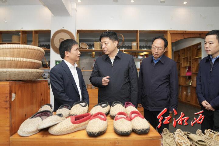 刘涛在吉信镇易地扶贫搬迁安置区小草手工艺品公司乡村车间调研。团结报全媒体记者 刘炜 摄