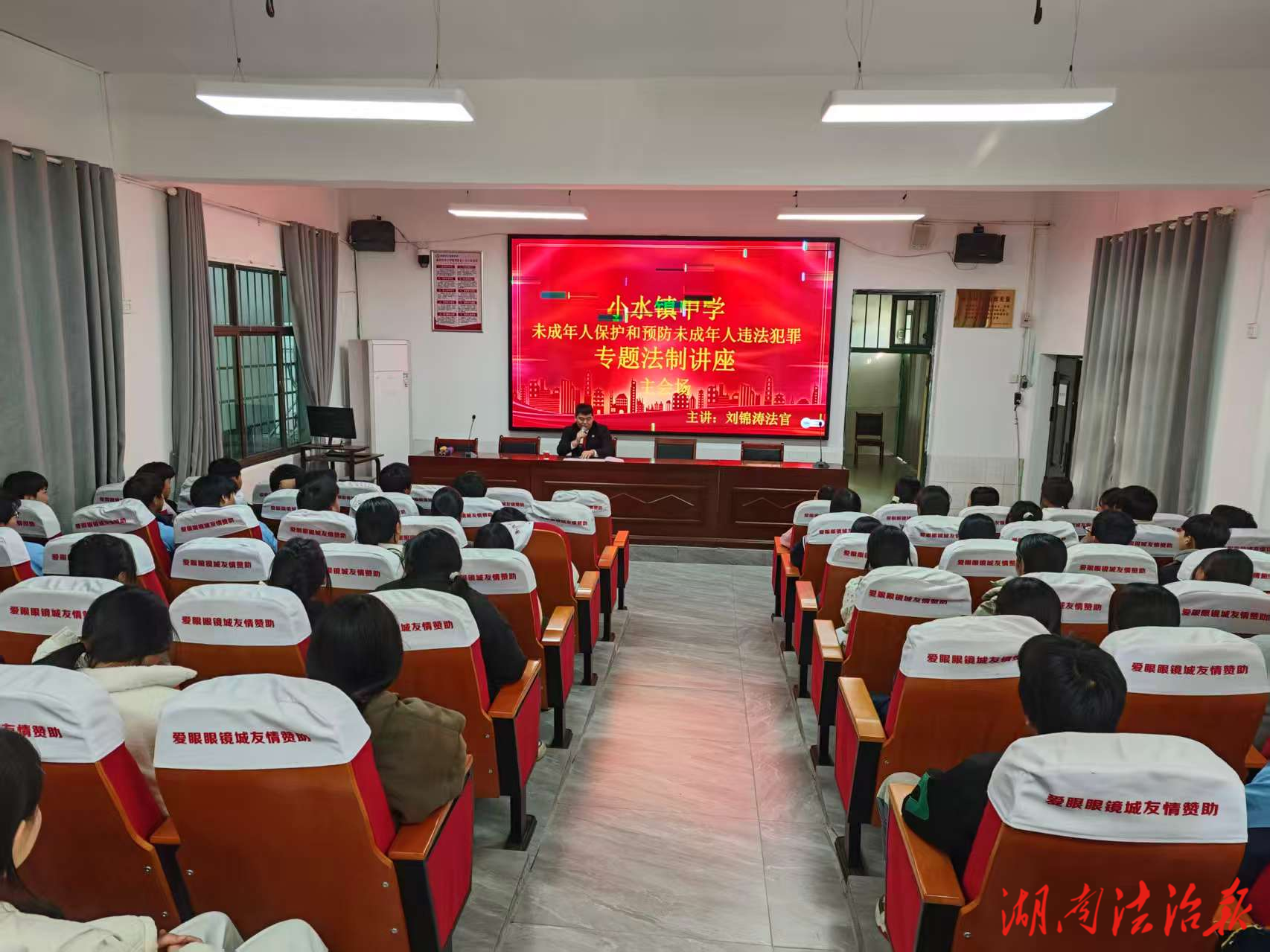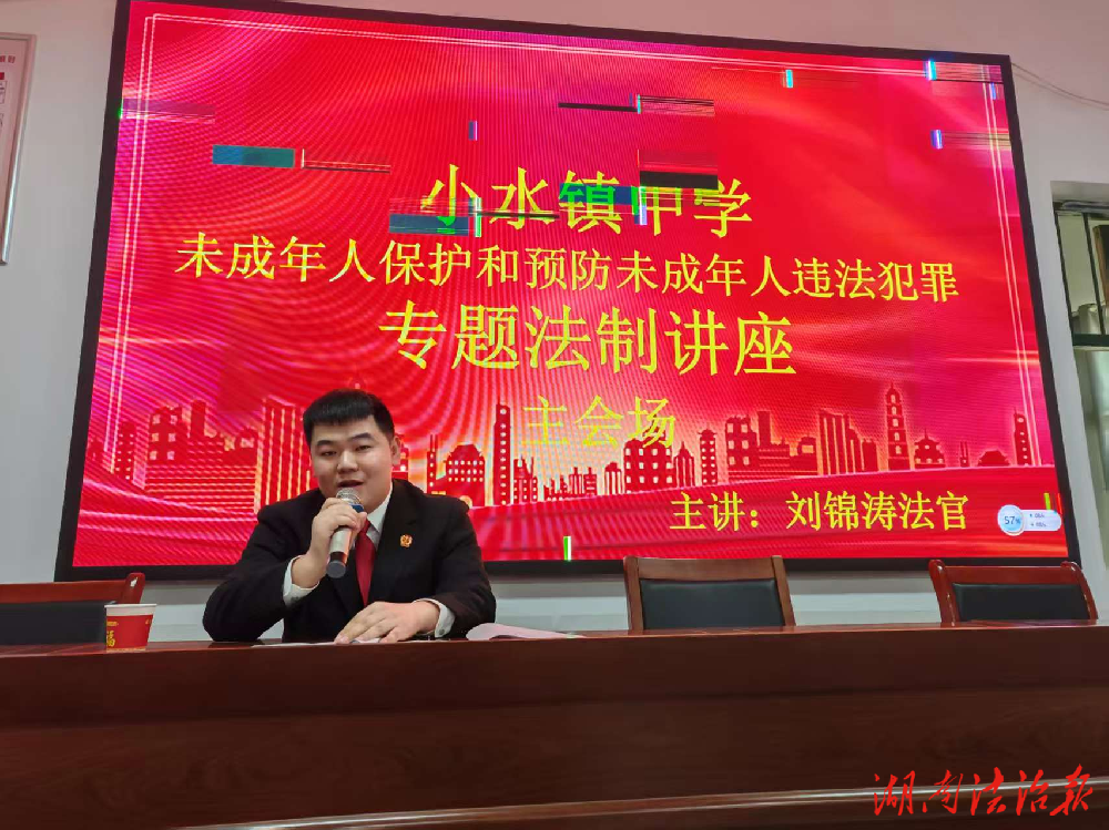 湖南法治报讯(通讯员 刘雅玥)为切实加强青少年法治教育,筑牢未成年人健康成长法治屏障,近日,耒阳市人民法院团支部联合执行局走进小水镇中学,开展“未成年人保护与预防未成年人违法犯罪”专题讲座,团支部副书记刘锦涛以法治副校长身份授课,为同学们带来干货满满的法治盛宴,现场互动热烈、氛围活跃。