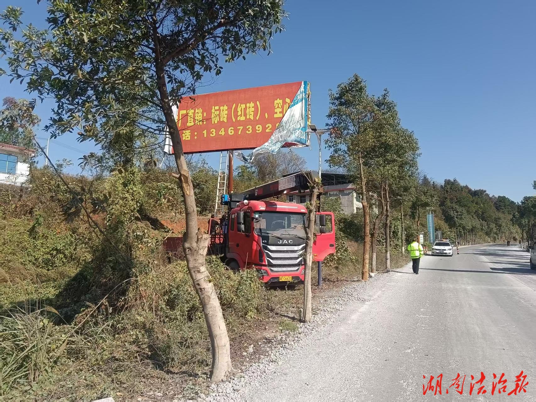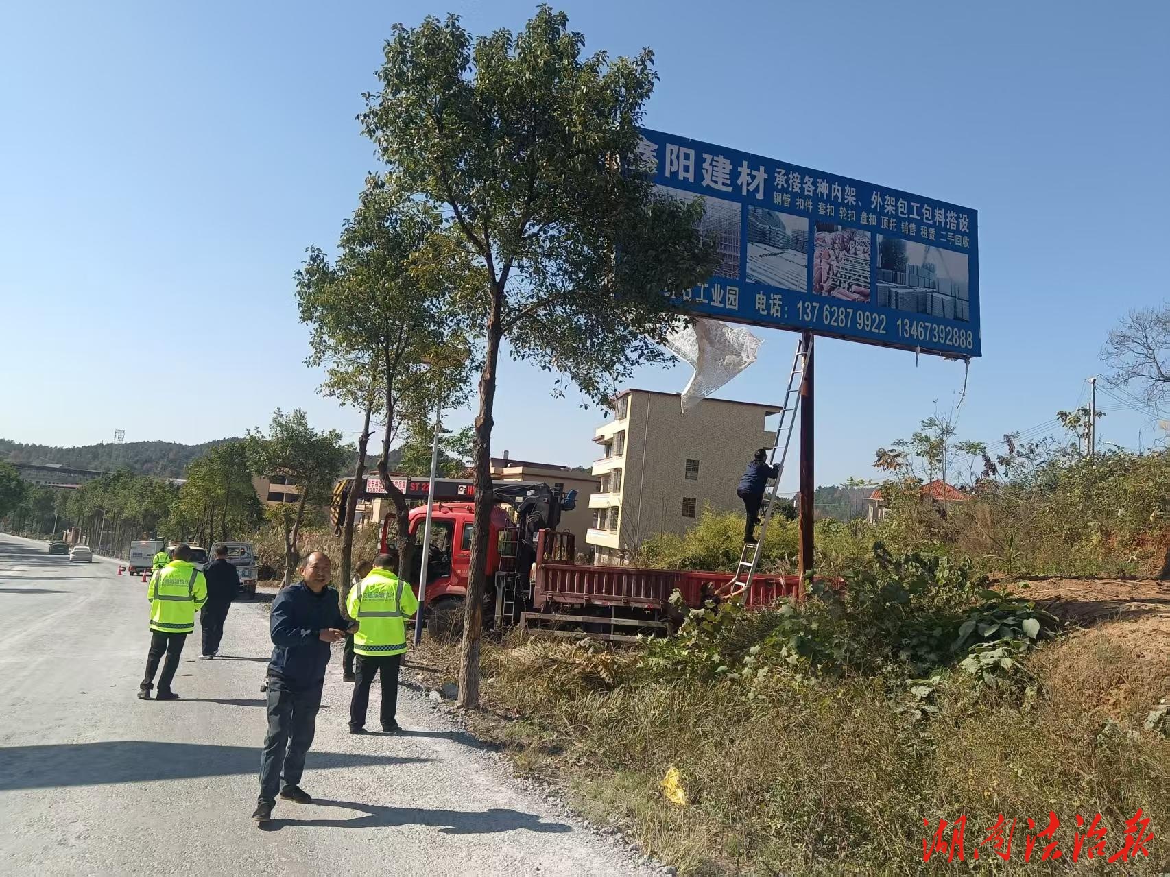 湖南法治报讯(通讯员 唐海通 唐勇军)近日,细心的市民行经G356、G207等邵阳县境内国省干线时,会发现道路沿线视觉清爽了许多。以往一些陈旧破损、设置不规范的大型非公路标志牌和小广告牌已不见踪影,路域环境得到有效提升。这一变化,源于邵阳县交通运输综合行政执法大队(以下简称“执法大队”)近期开展的一场针对老旧非公路标志牌的专项集中整治行动。