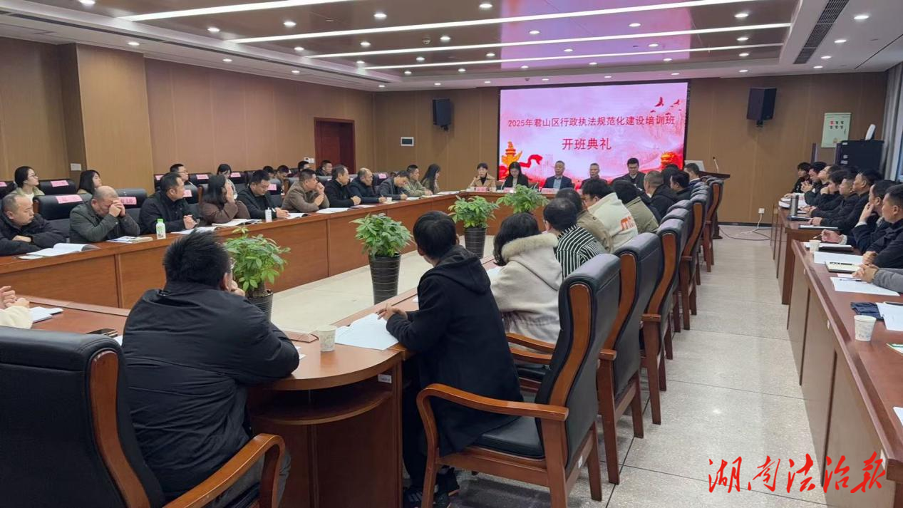 湖南法治报讯(通讯员 潘波棠)11月19日,2025年君山区全区行政执法规范化建设培训班在湖南理工学院法学院正式开班。本次培训由区司法局主办,来自全区各行政执法单位的分管负责人和业务骨干将参加为期三天的全封闭式集中培训。