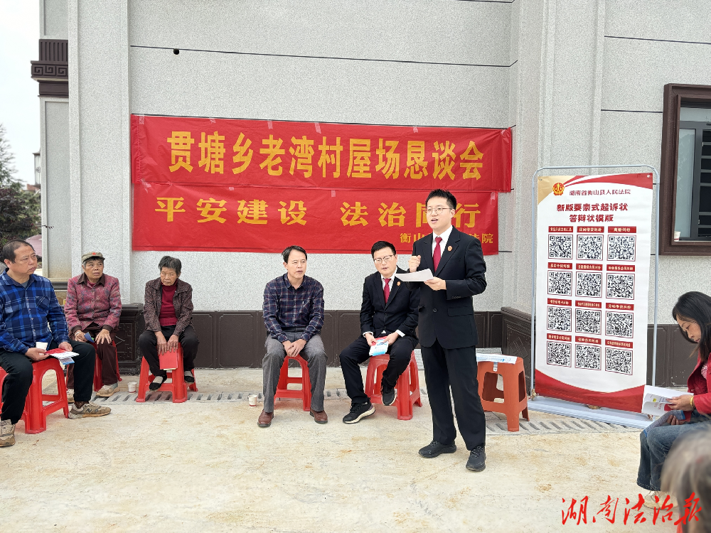 湖南法治报讯(通讯员 尹越锋)近日,衡山县人民法院白果法庭联合贯塘乡老湾村村委会,以“平安建设 法治同行”为主题,开展了一场别开生面的屋场恳谈会,将民调宣传、普法课堂送到村民身边,让法治宣传更加接地气、入人心。