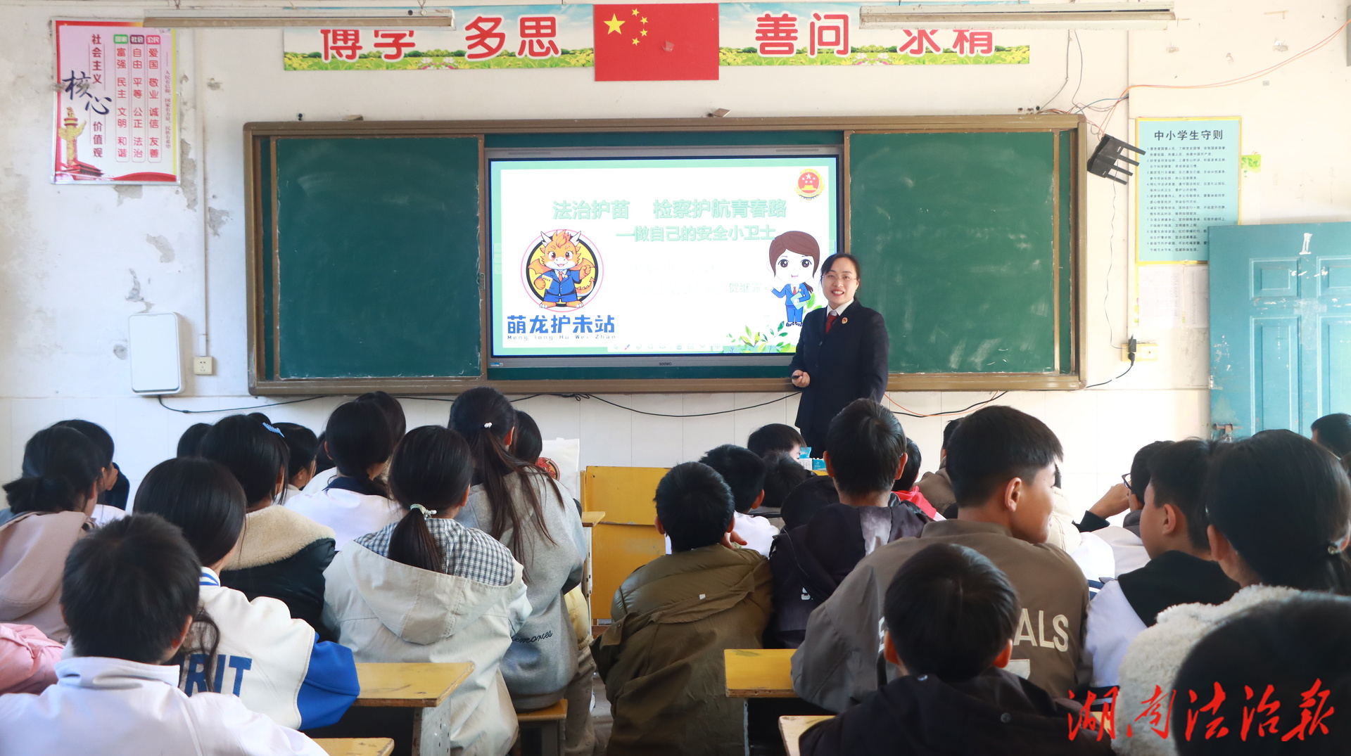 课堂伊始,一段生动有趣的法律动画片迅速吸引了同学们的注意。贺继露以动画为引,带领同学们开启了一场奇妙的身体认知之旅,帮助大家清晰认识属于自己的身体界限,深刻理解“我的身体我做主”的重要意义。“同学们,我们该如何分辨什么是友善的接触、什么是侵犯性的行为?”贺继露循循善诱,通过情景模拟和互动问答,引导同学们学会识别接触性和非接触性的侵害行为,鼓励大家勇敢地对任何不适当的触摸大声说“不”。 同时,针对实际生活中可能遇到的情况,贺继露详细讲解了具体应对技巧:大声呼救吸引周围关注、迅速逃离危险环境、及时向信任的成年人求助、妥善保存相关证据。每一条实用建议都如同坚实的铠甲鳞片,为同学们构筑起自我保护的坚固防线。 这堂充满温情与力量的法治教育课,不仅是知识的传递,更是心灵的守护。下一步,临武县人民检察院将持续深化“法治进校园”活动,以检察力量护航青少年健康成长,让青春在清朗安全的法治环境中绽放绚丽光彩。