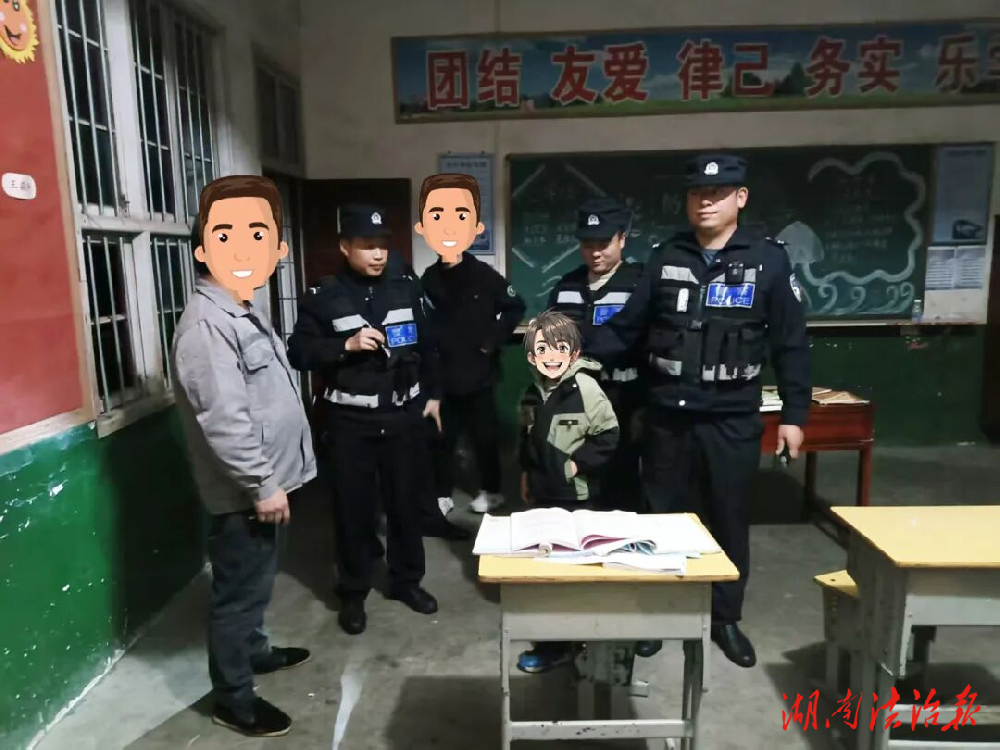 接警后,值班民辅警耐心安抚匡某情绪,并细致地询问孩子衣着特点和体貌特征等信息。了解情况后,民辅警迅速兵分两路追踪孩子行踪,一路沿着学校到回家的路线进行地毯式排查,一路调取学校周边的监控视频进行查找。经过2小时的不懈寻找,民辅警最终在教室里找到了那个小男孩——他正趴在课桌上认真地写作业。原来,小男孩因为这次考试没考好,害怕回家被父母责骂,放学走到家门口的路口时,犹豫再三,又悄悄绕了一段山路返回教室,独自写起了作业。