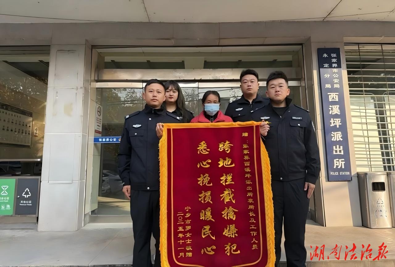 11月30日,罗女士专程将一面印有“跨地拦截擒嫌犯 悉心挽损暖民心”的锦旗,送到了西溪坪派出所袁鄂手中,以表达内心诚挚的谢意,以及对派出所工作的深深认可。