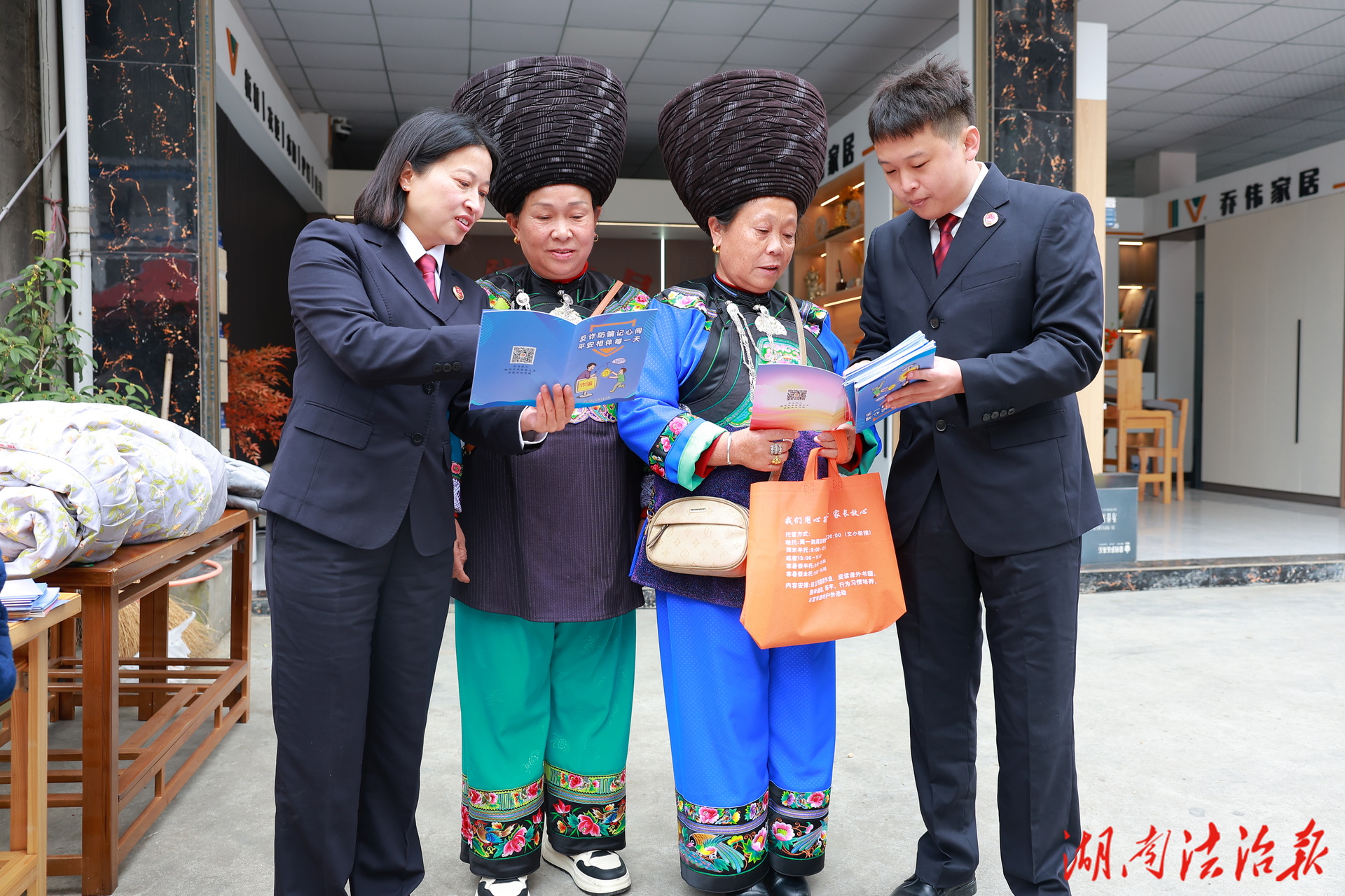 除普及宪法知识外,干警们还紧密结合当前社会治理重点与群众关切,开展了延伸法治宣传。对于农村留守儿童家庭,他们详细讲解了《未成年人保护法》中关于家庭保护、学校保护的相关内容,提醒家长加强对孩子的安全教育;在面对日益高发的电信网络诈骗时,干警们则结合典型案例,揭秘常见骗术,反复叮嘱老乡们“不轻信、不透露、不转账”,守护好“钱袋子”。此外,宣传内容还涵盖国家安全、平安建设、妇女权益保障、劳动者保护等多方面,引导群众自觉守法、遇事找法。