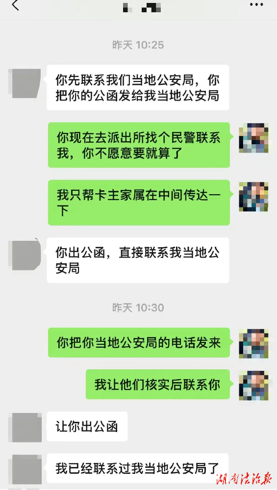 湖南法治报讯(通讯员 龙嘉莉 唐江涓 )“我是邵阳县公安局民警,您被骗的钱追回来了,现在要退给您……”“得了吧,你们这些骗子,我才不信呢!”微信这头是邵阳县公安局一心想要返还被骗资金的民警,微信那头是坚信自己又遇上“假警察”的受害人,尽管民警通过微信发送警官证照片,对方依然疑虑重重,反复强调“你跟我们这边公安局联系吧!”这令人哭笑不得的一幕,正是邵阳县公安局民警在办理一起“两卡”犯罪案件,为受害人追赃退赔时的真实经历,而这一切还要从一名妄想“黑吃黑”的卡主说起。