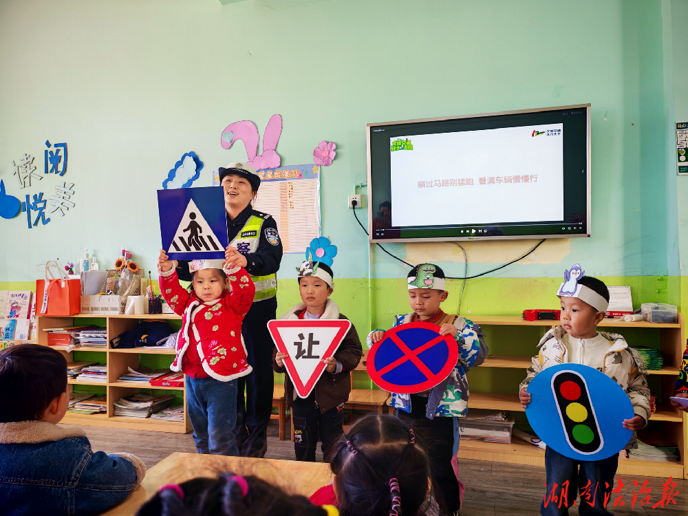 寓教于乐,安全种子播校园。民警走进阳光宝贝幼儿园,通过情景模拟、互动游戏等方式,为孩子们上了一堂生动交通安全课。“交警小熊”玩偶成为知识“小伙伴”,以“小手拉大手”将文明出行理念延伸至家庭。