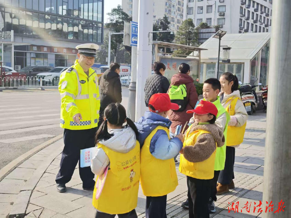 随后,在宣传民辅警的组织带领下,“公益小天使”们化身 “文明交通小使者”,走上文明路十字路口开展交通劝导志愿服务。小使者们佩戴统一标识,用稚嫩却坚定的声音,提醒过往行人及非机动车驾驶人不闯红灯、不乱穿马路、不翻越隔离护栏,骑乘摩托车、电动车时务必规范佩戴安全头盔。同时,民辅警与小使者们一同向过往群众发放交通安全知识宣传手册,面对面讲解交通安全法律法规和出行避险技巧,呼吁大家共同遵守交通规则,携手守护道路交通安全。