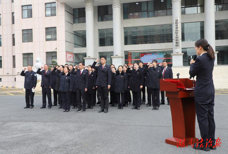随后,在党组副书记、分管日常工作的副检察长陈昉的领誓下,全体干警面向国旗、高举右拳,进行了庄重宣誓。“我宣誓:忠于中华人民共和国宪法,维护宪法权威,履行法定职责……”铿锵誓言展现了全体检察人员对宪法的无限尊崇、对法治的坚定信念和对人民的庄严承诺。