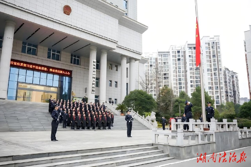 迎着冬日的晨光,全体干警在广场上整齐肃立,护旗手步伐铿锵,随着《义勇军进行曲》激昂奏响,鲜艳的国旗冉冉升起。在随后的宣誓仪式上,干警们右手举拳,在陈建新院长的领誓下,齐声宣誓:“忠于中华人民共和国宪法,维护宪法权威,履行法定职责……”这是对宪法权威的庄严致敬,更是张家界法院人践行司法为民初心的郑重承诺。
