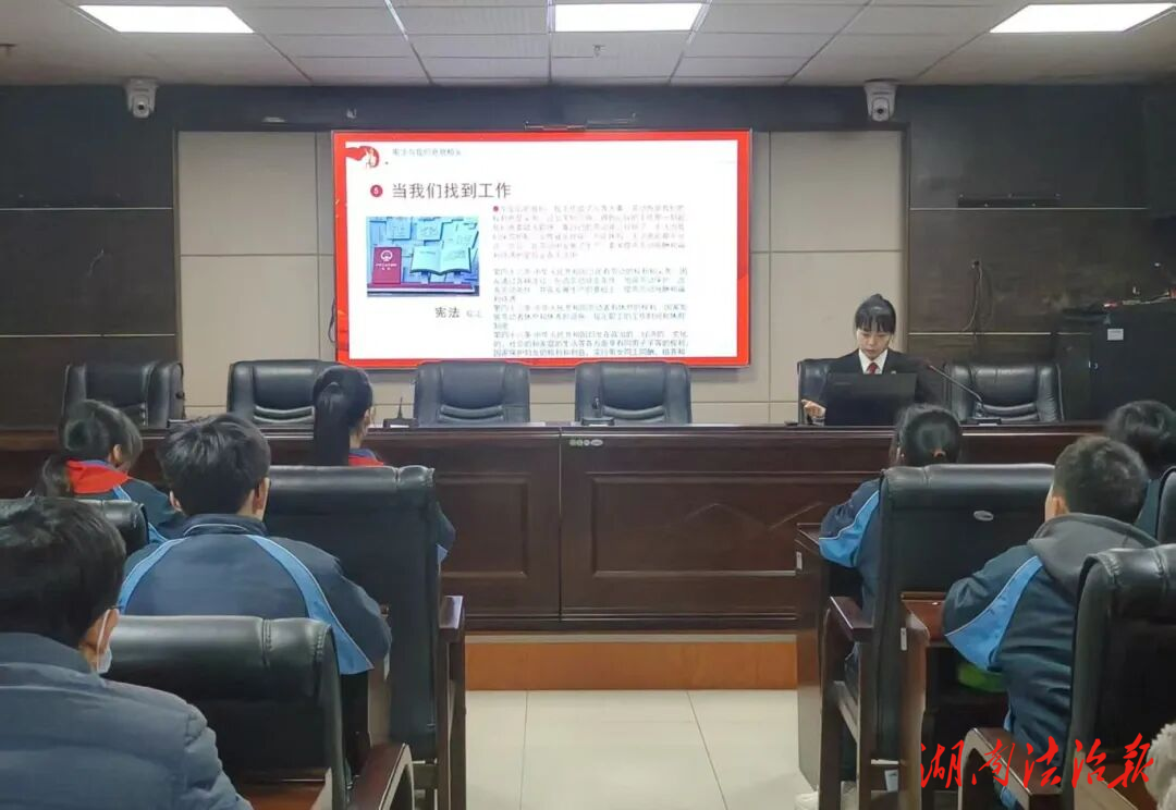 湖南法治报讯(通讯员 刘羽茜)为深入学习宣传贯彻习近平法治思想,大力加强宪法宣传教育,弘扬宪法精神,维护宪法权威,在“12·4”第十二个国家宪法日到来之际,安化县人民法院组织开展以“法润青春·‘宪’在启航”为主题的“法院开放日”活动,邀请东坪镇中学20余名师生走进法院,开启一场沉浸式法治学习之旅。