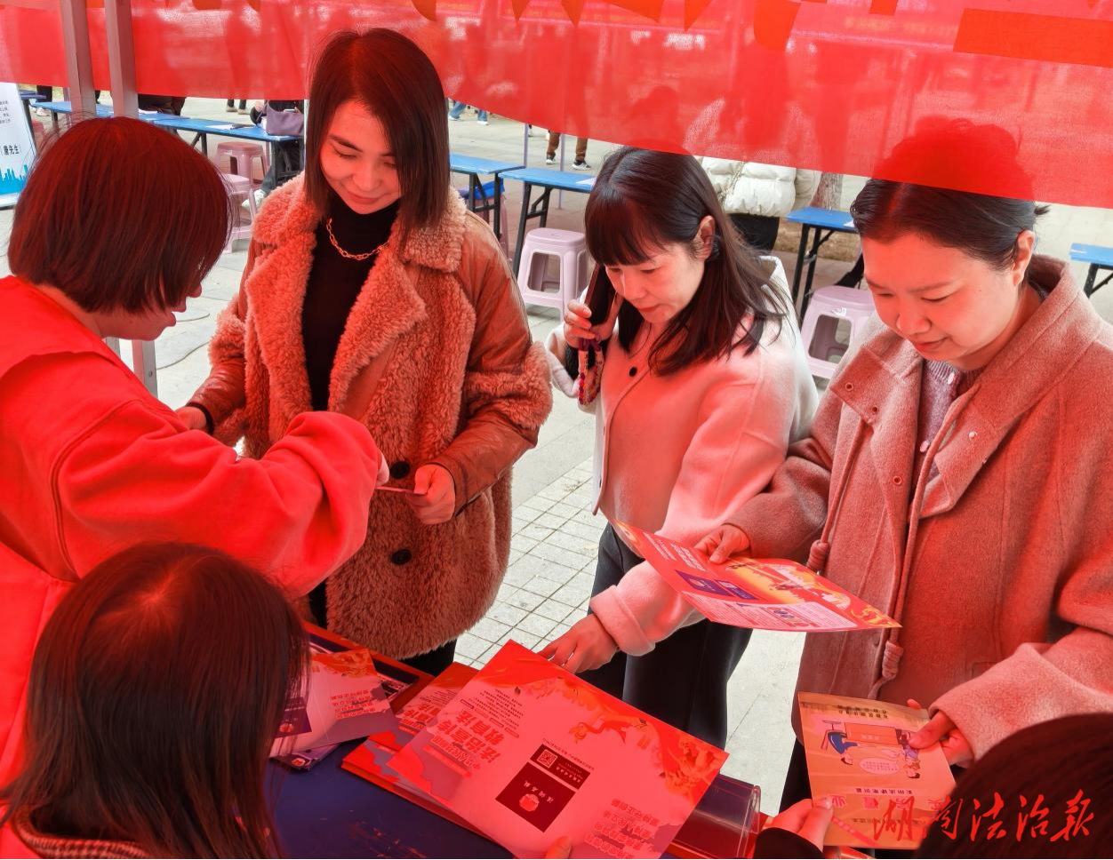 图:石鼓区司法局普法工作人员宣讲资料内容、解答群众提出的法律疑惑