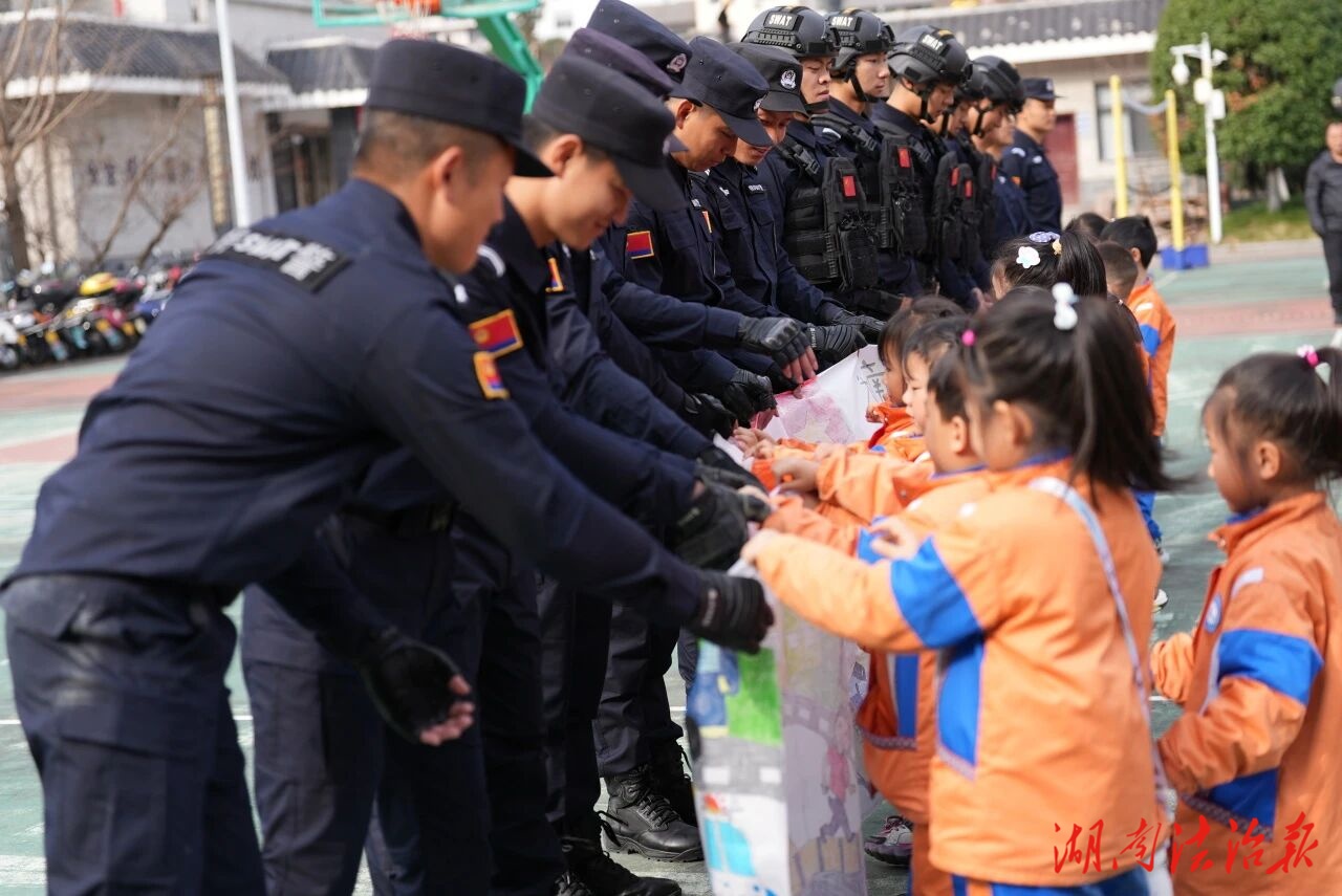 “小朋友们,遇到爸爸妈妈以外的人接你们回家怎么办?”“过马路要注意什么?”在安全知识课堂上,特警队员结合儿童身心特点,用生动有趣的案例和互动问答,讲解了防拐骗、交通安全等实用知识,小朋友们积极举手回应,在轻松愉快的氛围中掌握了必备的安全常识。