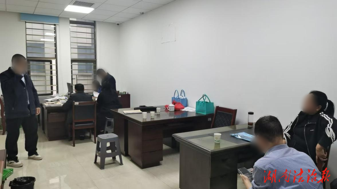 隆回县人民法院立案庭法官曾丽贞、调解员钱守俭、罗细红和保险公司工作人员、当事人律师第三次调解现场。