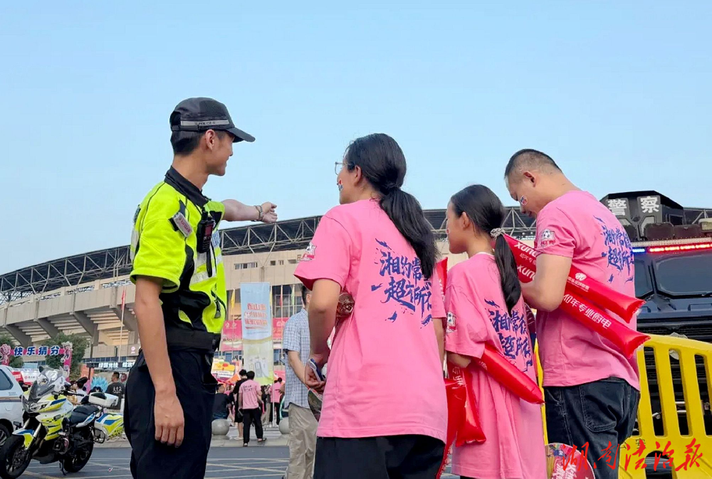 除了现场管控,公安交管部门还充分利用新媒体平台进行宣传引导。提前发布 《湘超联赛观赛出行指南》 ,详细推荐公共交通路线、自驾路线及停车攻略,帮助市民合理规划行程。