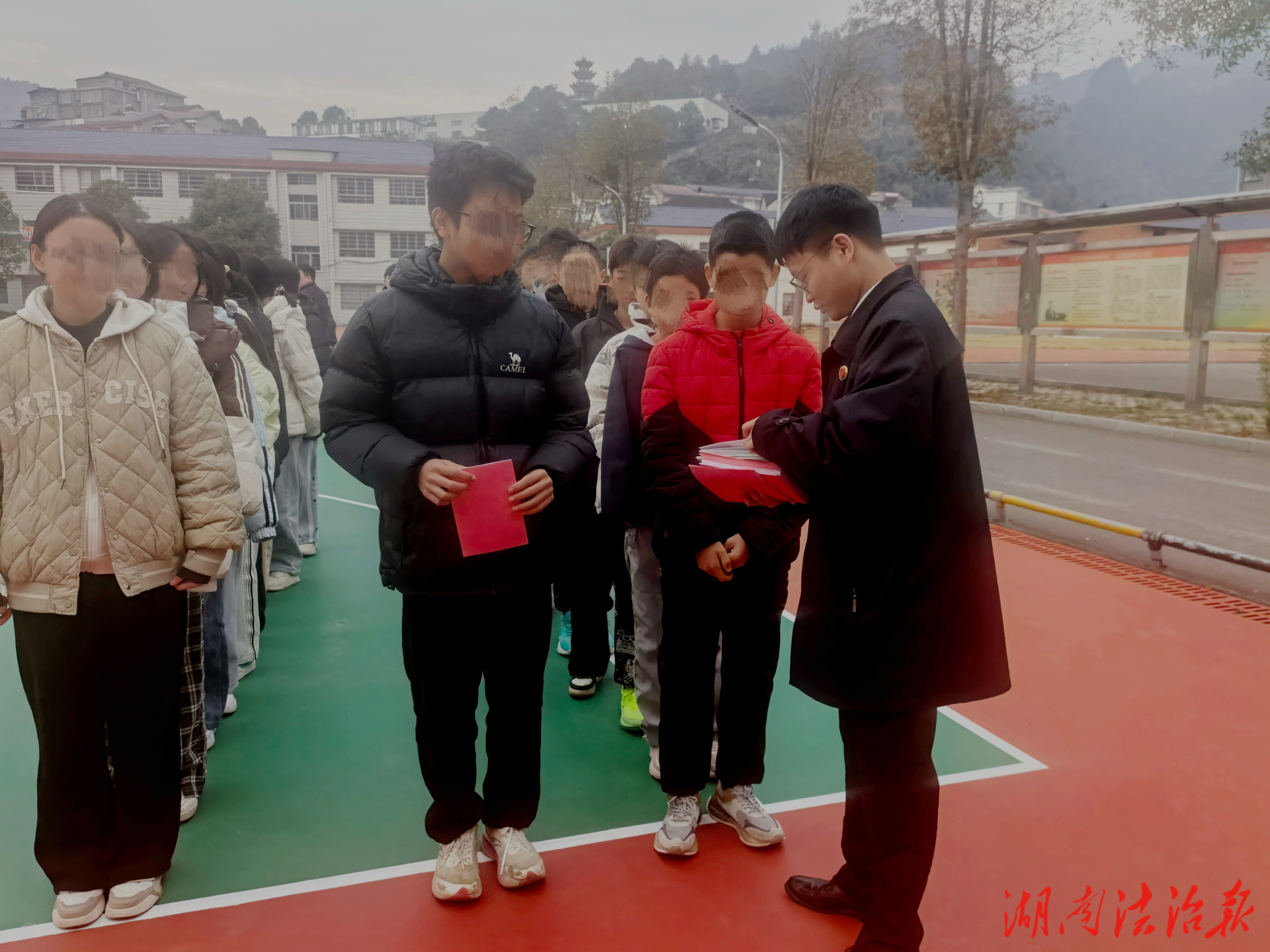 检察官向学生发放普法宣传手册