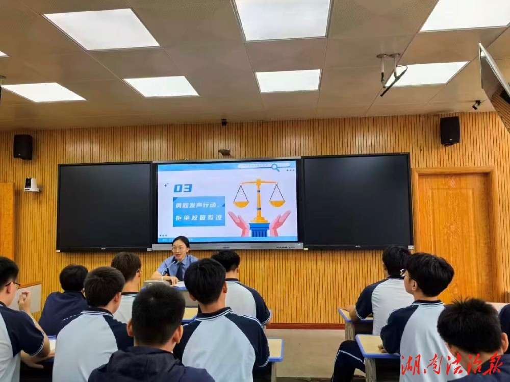 平江县第二中学:“法律原来离我们这么近!”一名学生在听完干警李茉莉的法治课后感慨道。李茉莉从“预防性侵害”“远离网络诈骗”“拒绝校园欺凌”等多个主题入手,用生动的案例和娓娓道来的语言,将抽象的法律知识转化为学生听得懂、记得住的生活道理,为学生带来一场兼具教育意义和现实指导意义的法治课。