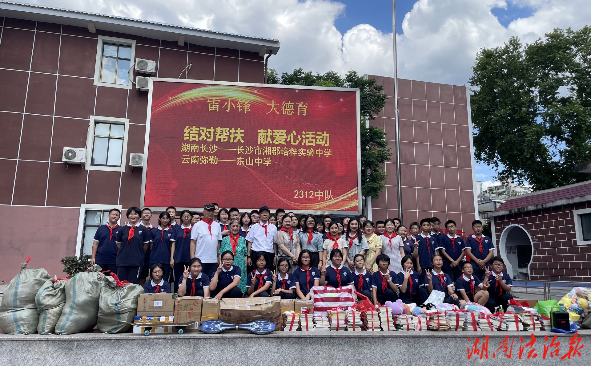 来自浙江温州的居民林微微对居民公约有着独特的感悟。在她看来,居民公约中“扶残济贫爱心献”的精神不仅在社区内熠熠生辉,还延伸到了更远的地方。2024年盛夏,在工农桥社区党委和天心区人大代表的大力支持下,她积极促成了一场跨越千里的爱心接力——联合长沙市湘郡培粹实验中学2312中队的“雷小锋”志愿者与社区党委共同发起“结对帮扶献爱心”捐赠活动,为云南省弥勒市东山镇中学的同学们送去了丰富的书籍、衣物等物资,用实际行动传递温暖与希望。