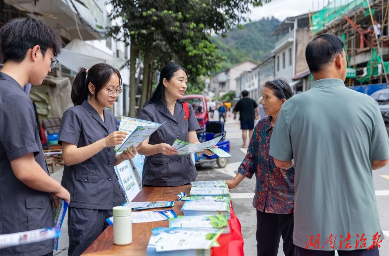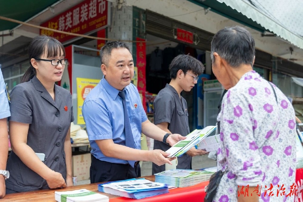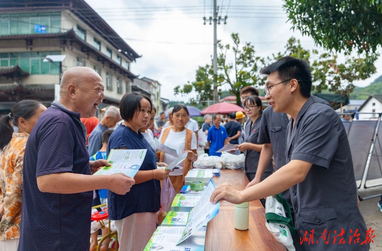 活动当天,茅岩河镇集市人头攒动,气氛热烈。张家界市中级人民法院、永定区人民法院、永定区人民检察院、永定区农业农村局、张家界市生态环境局永定分局工作人员通过悬挂横幅、设立咨询台、发放宣传资料、展示典型案例展板、现场互动答疑等多种形式,向赶集的群众和周边居民重点宣传水源保护、森林防火、秸秆禁烧、非法捕捞水产品等与生态环境保护息息相关的法律法规知识。