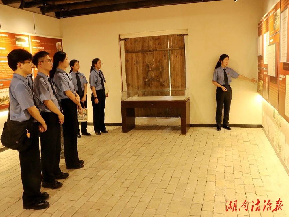新进人员集体来到了李六如故居参观学习。在讲解员深情的讲解中,干警们时而驻足凝视着一块块代表革命印记的展板,时而低头细细品读着一份份泛黄的手稿。“故居无声,却时时刻刻都在诉说着李六如前辈对党忠诚、勇毅担当、清正廉洁的红色革命精神。”一名干警在观看李六如生平展时感叹道。
