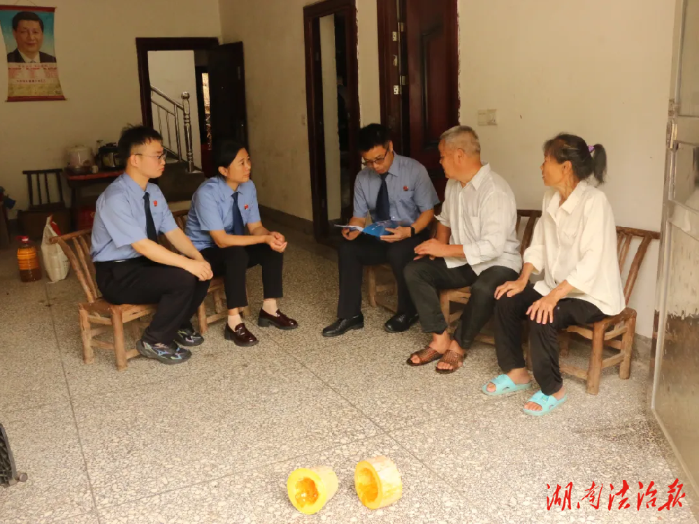 在村部会议室,青年干警张翊、唐嵘开展法治宣讲。张翊生动阐释检察机关刑事、民事、行政、公益诉讼“四大职能”,普及“家庭教育指导”作用。唐嵘结合暑期安全热点,通过典型案例解析,重点讲解防性侵、防网络诈骗、防溺水“六不准”原则,现场发放《家庭教育指导法治手册》《防止干预司法“三个规定”》手册100余份,解答法律咨询20余人次。参与此次活动的村民感慨:“以前总觉得检察院离我们很远,今天才知道你们管这么多与老百姓息息相关的事!”