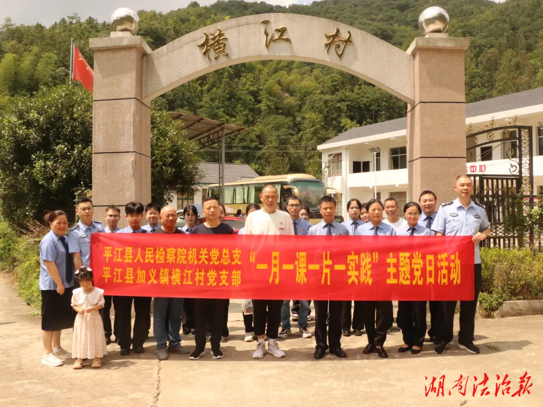 湖南法治报讯(通讯员 林钗丽)为深化党建联建共建机制,推动检察职能向基层延伸,通过“党建红”引领“检察蓝”,近日,平江县人民检察院组织党员干警赴加义镇横江村,与该村党支部联合开展主题党日活动。通过实地走访、普法宣讲、党课学习等形式,为乡村振兴注入法治动能,传递检察温度。