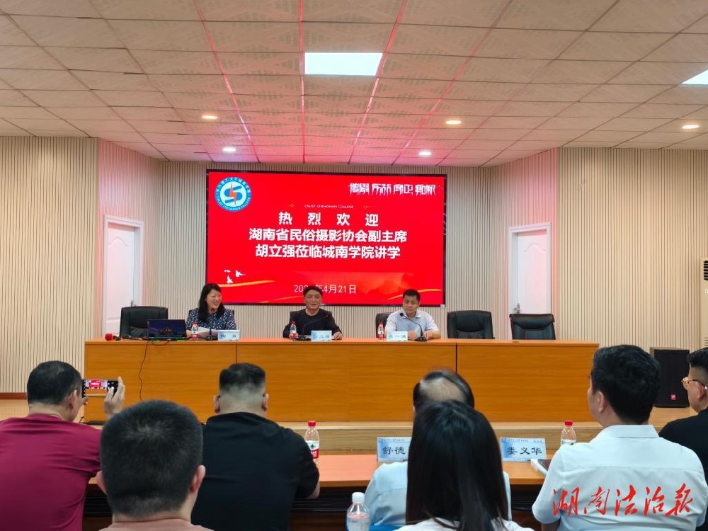 湖南法治报讯(通讯员 陈竹/文 谭恺睿/图)4月21日,长沙理工大学城南学院邀请湖南省民俗摄影协会副会长胡立强开展以“抓拍最真实‘角度’发现美”为题的精彩公益讲座,引导在校师生了解新闻摄影与手机摄影的技巧,多角度培养学生综合实践能力。活动由学院党委副书记陶双主持。