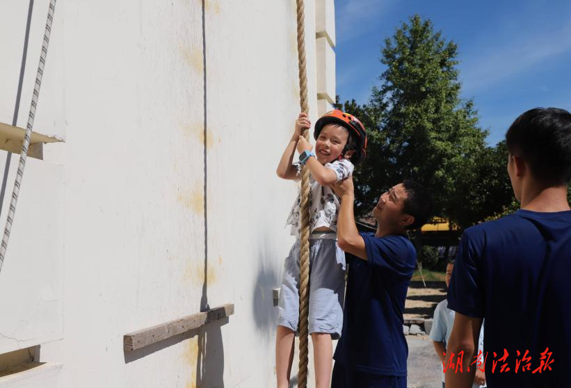 随后,大家现场观摩了消防员攀爬绳索、15米金属拉梯上四楼等日常训练科目,他们动作迅捷、身手矫健,赢得了现场阵阵掌声。三位勇敢的小朋友在消防员专业的指导和保护下,兴奋地尝试了绳索攀爬体验。这份“零距离”的亲身体验,在孩子们心中悄然种下了敬畏生命、崇尚英雄的种子。